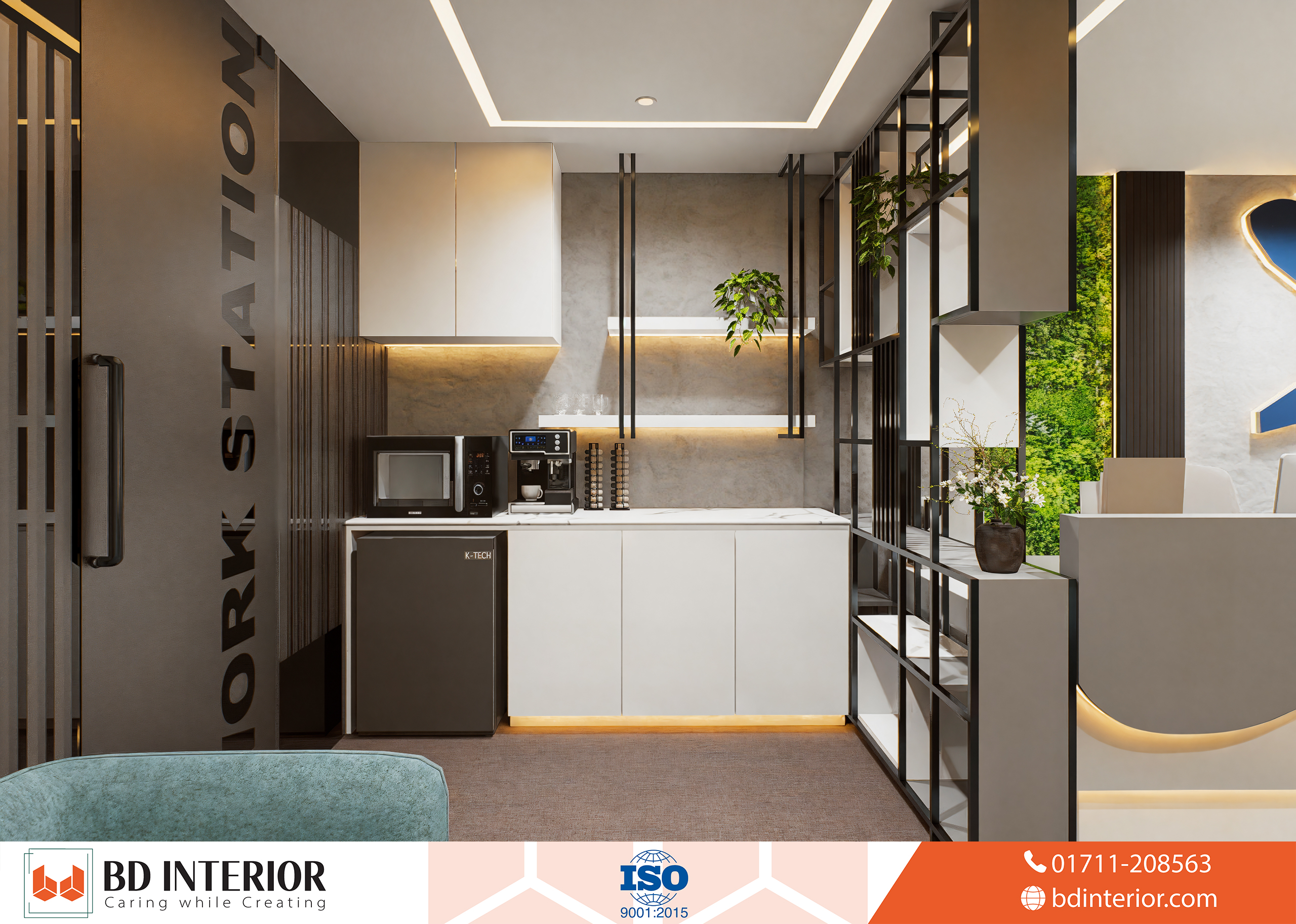 The Pantry: Last but not least, a well-placed slim part works as a functional buffer between reception and workstations, accessible to all staff.