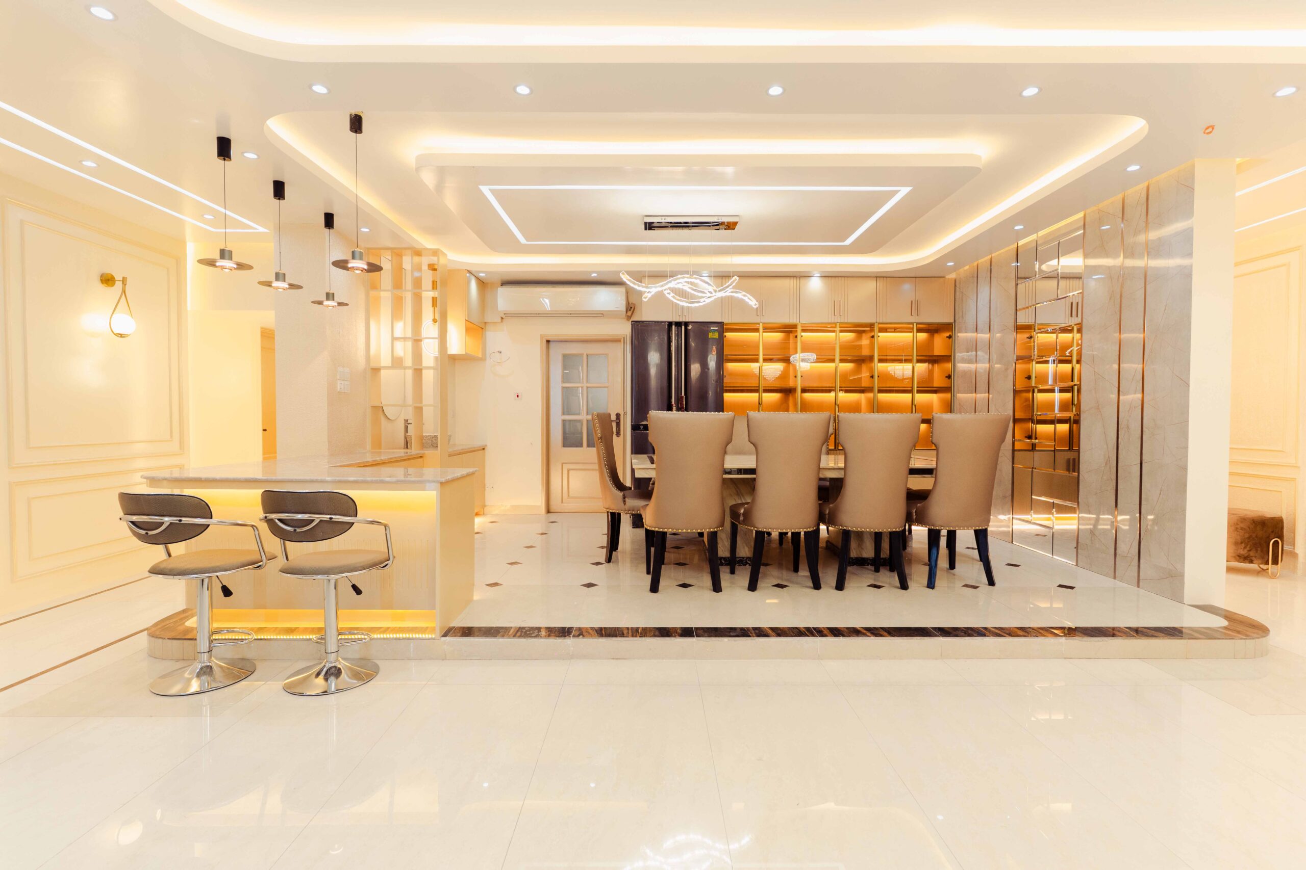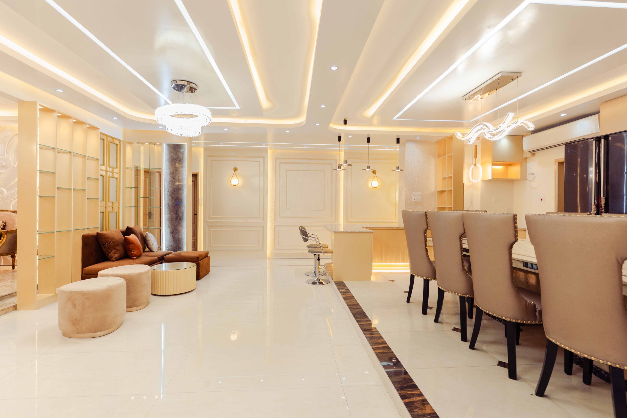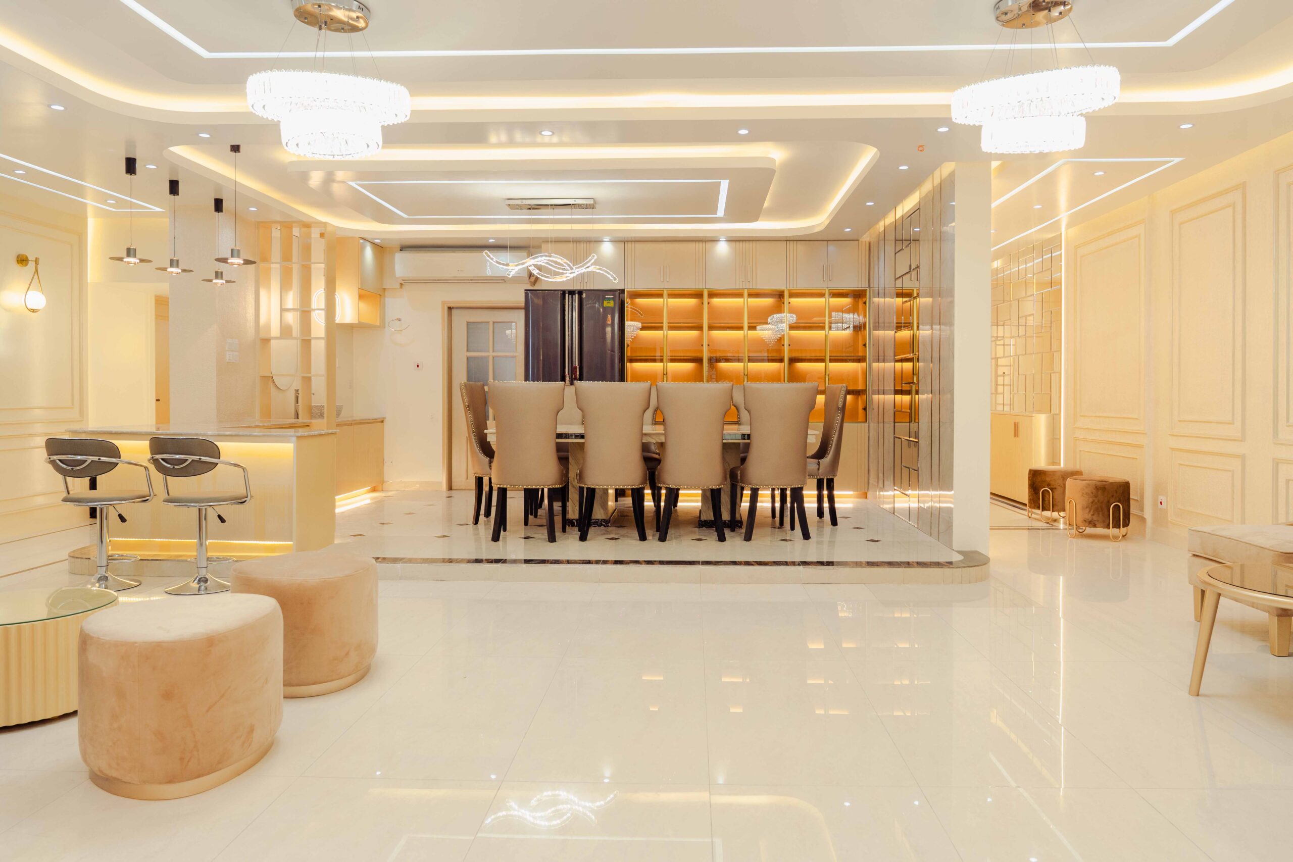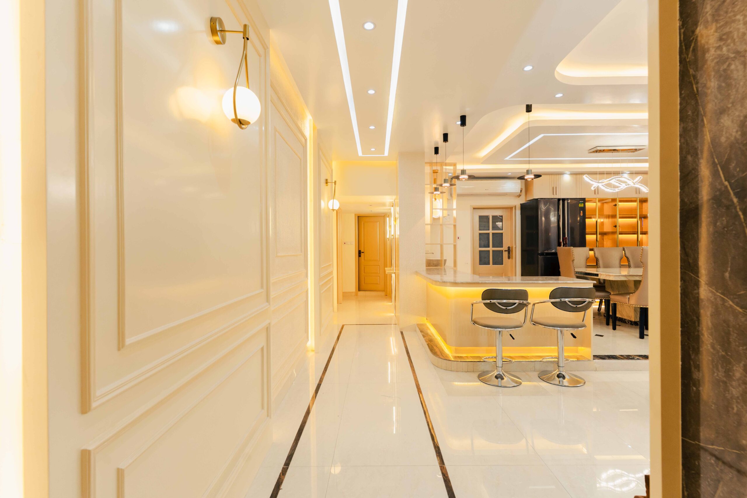 Foyer: The foyer serves as an elegant entryway that establishes the apartment’s sophisticated character, utilizing premium materials and a refined composition to make a lasting impression while providing a practical space for visitor reception and transition management.