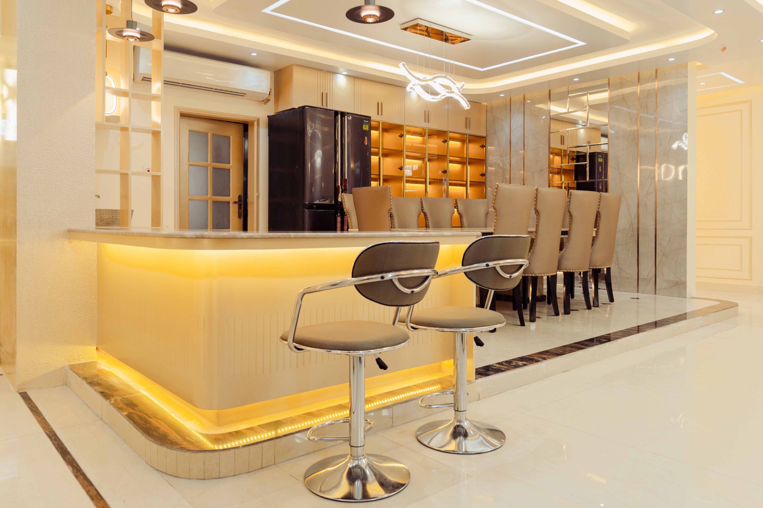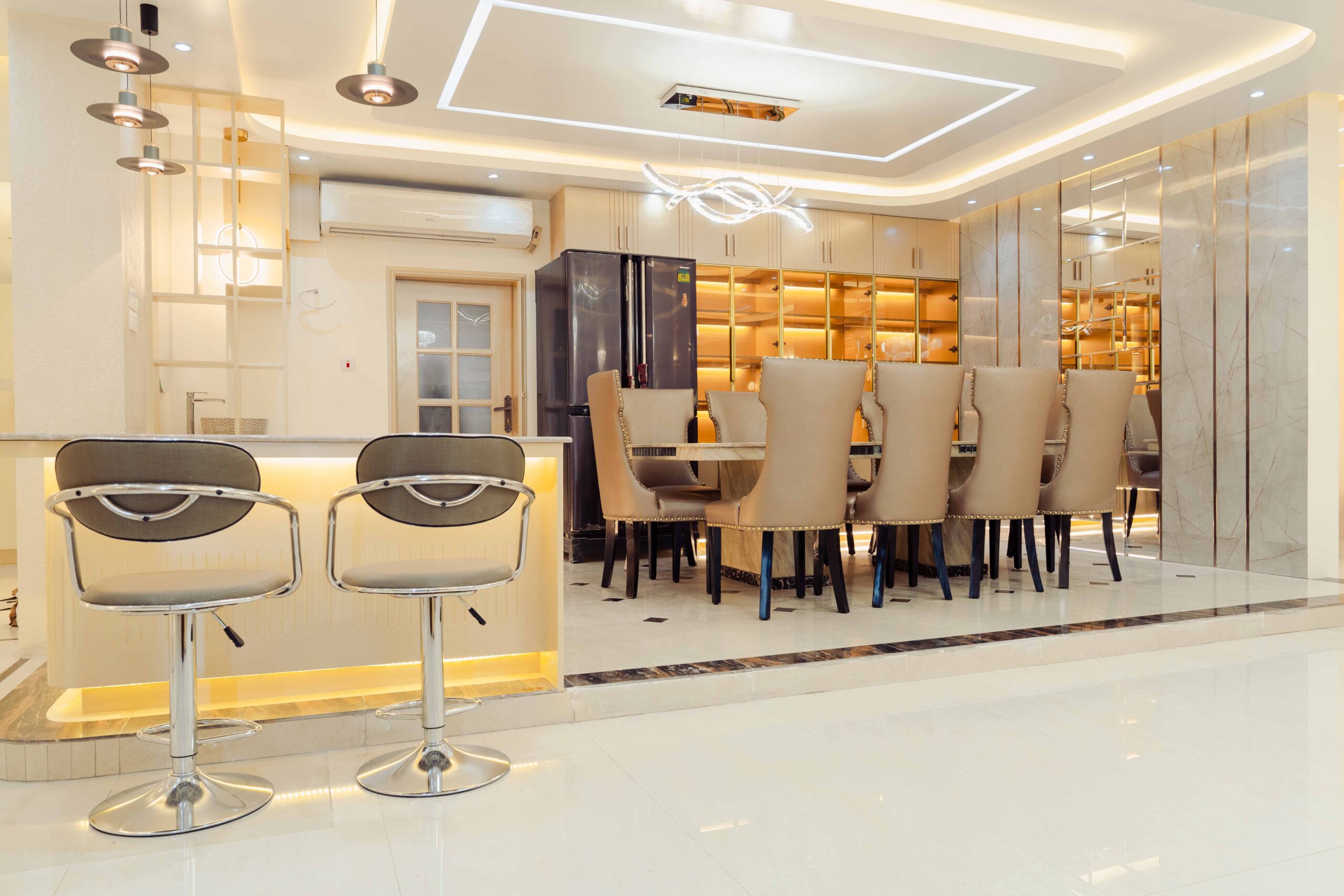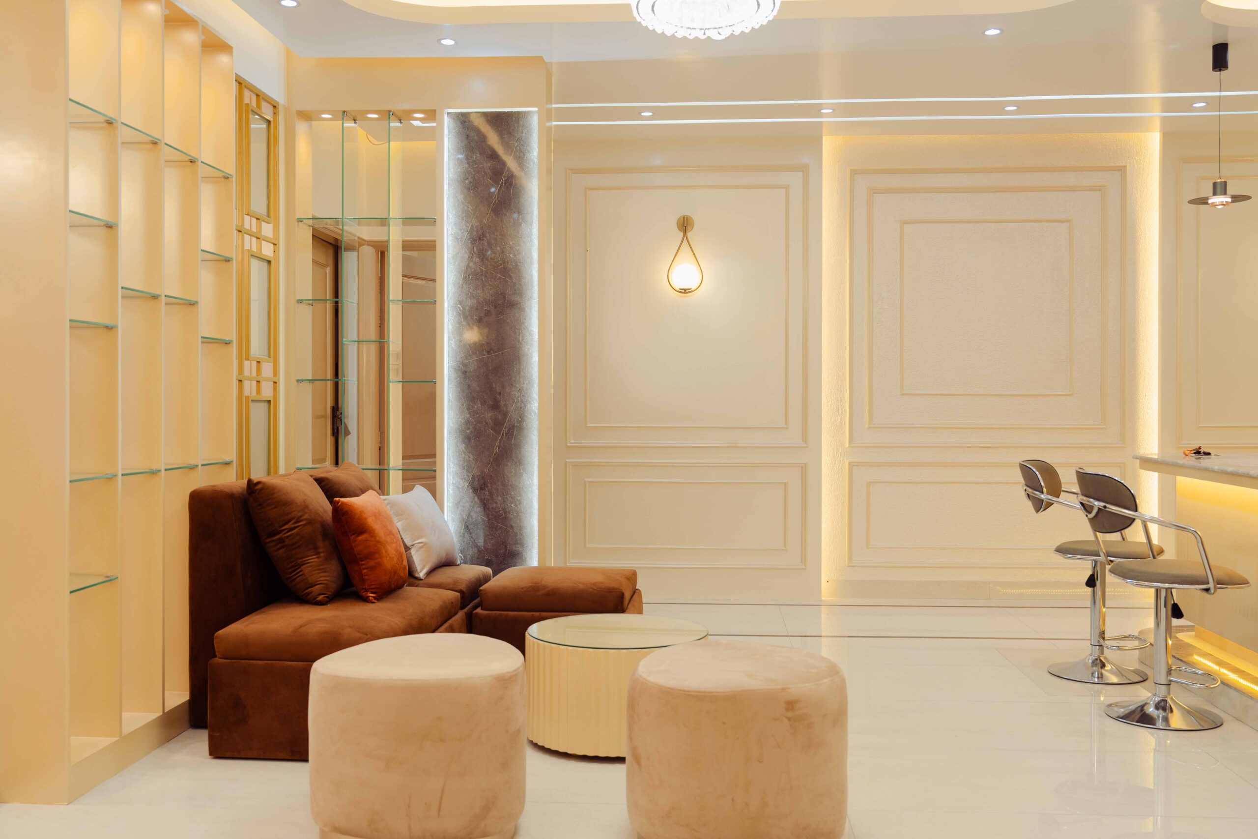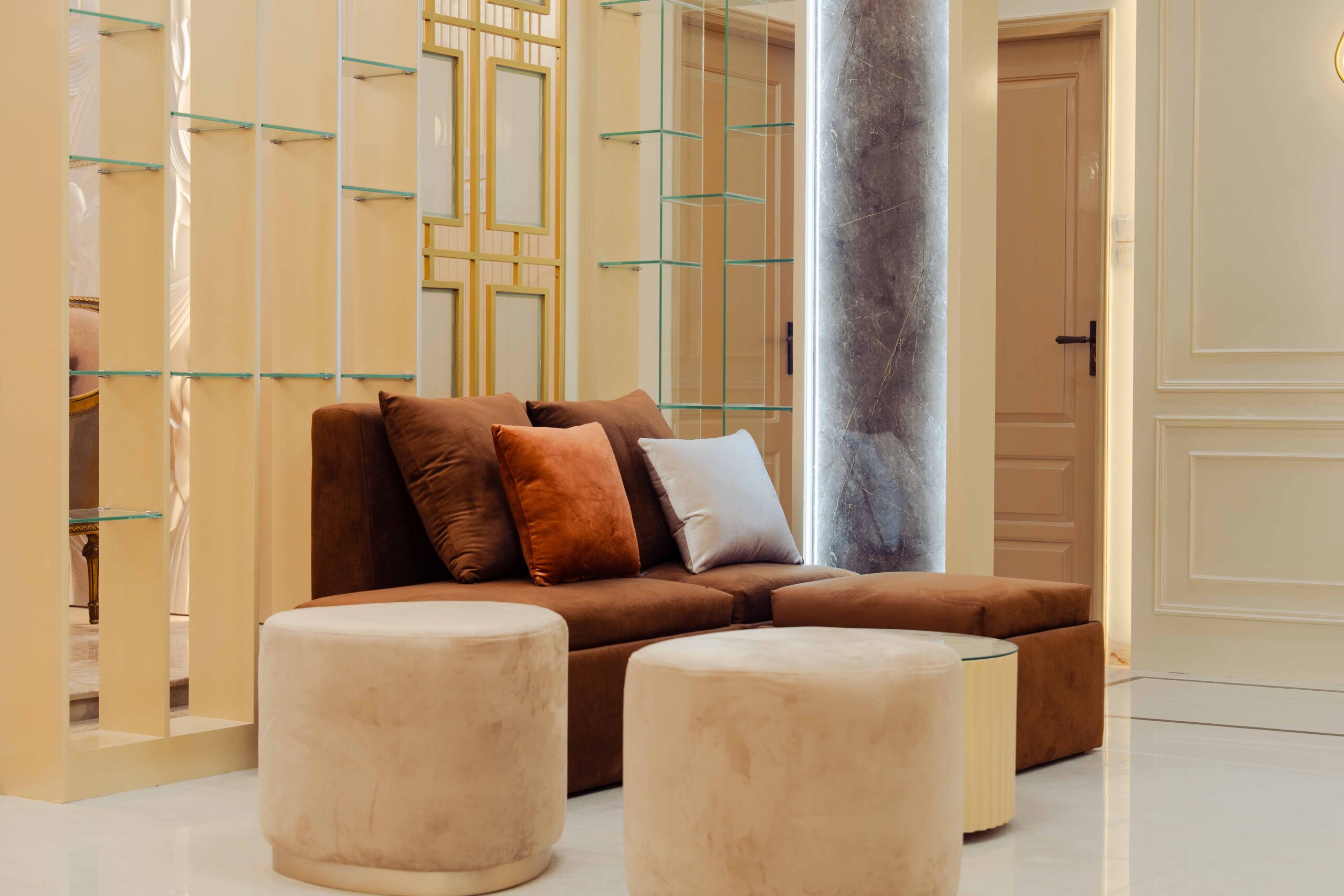Foyer: The foyer serves as an elegant entryway that establishes the apartment’s sophisticated character, utilizing premium materials and a refined composition to make a lasting impression while providing a practical space for visitor reception and transition management.