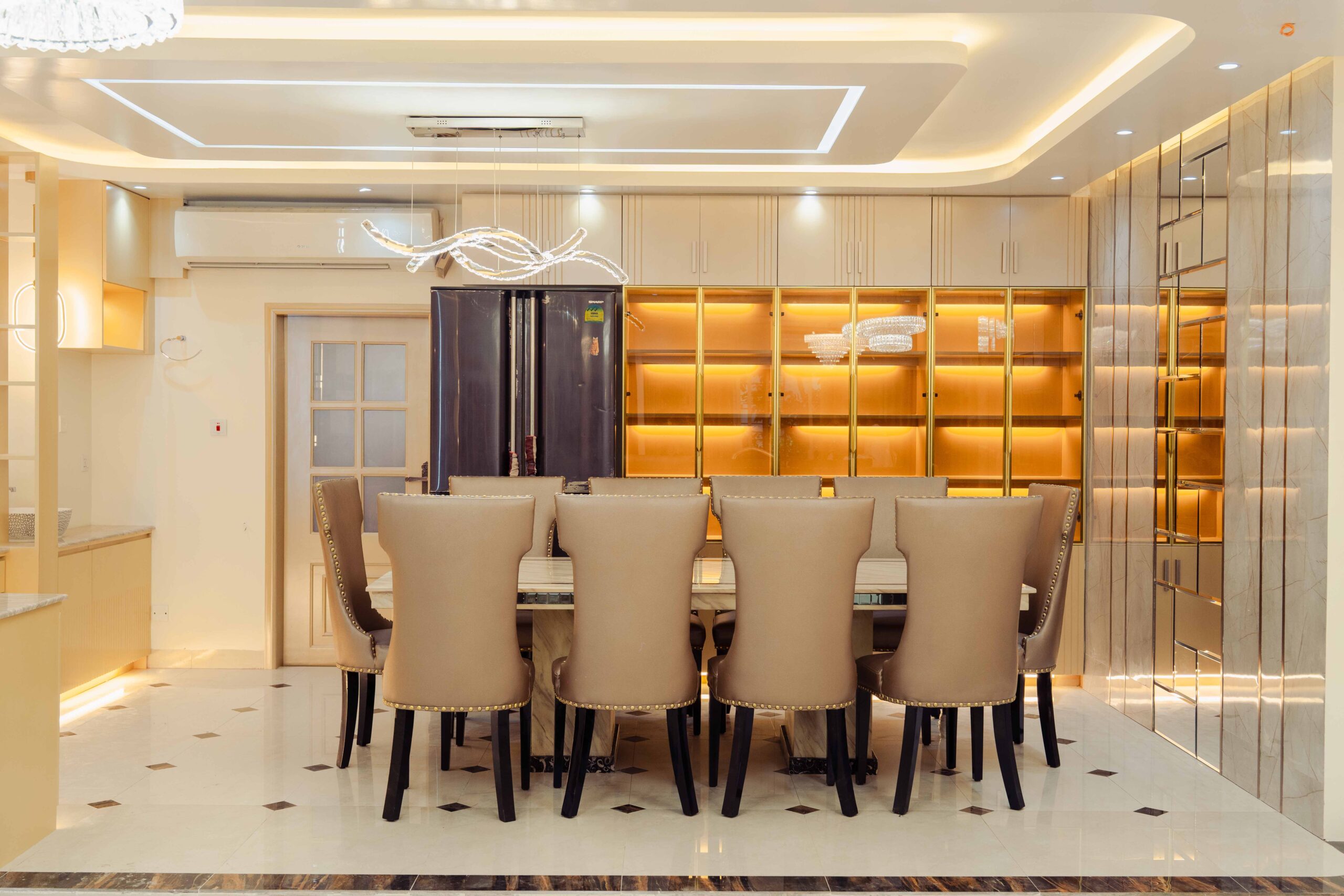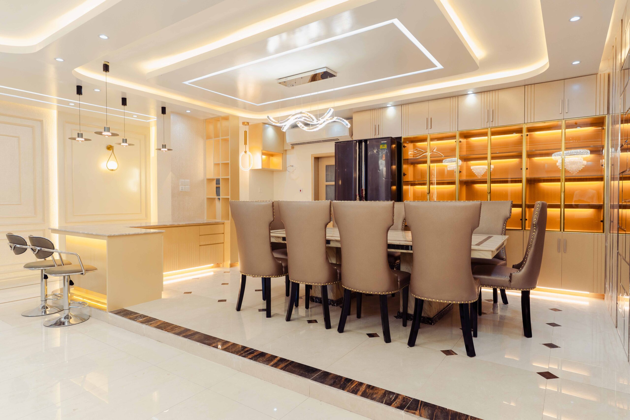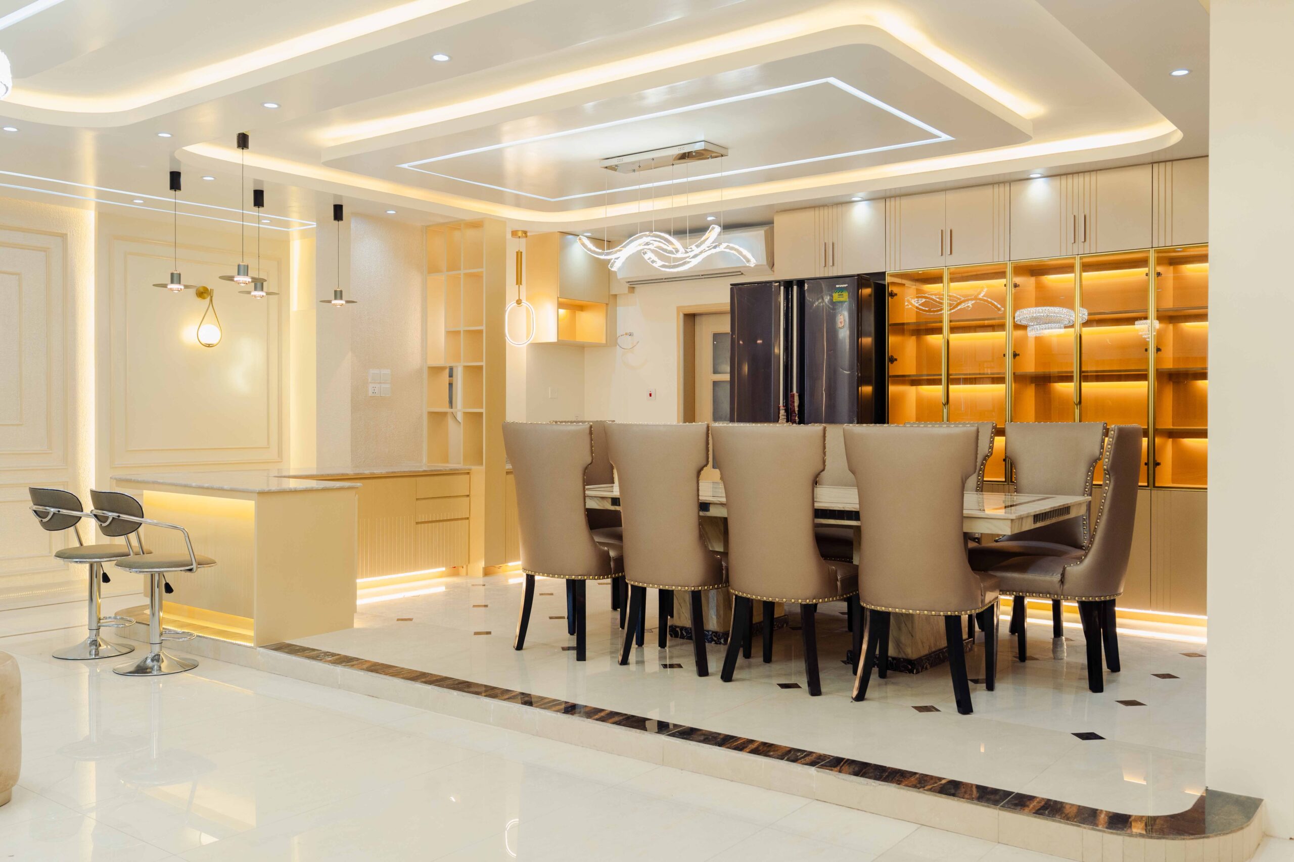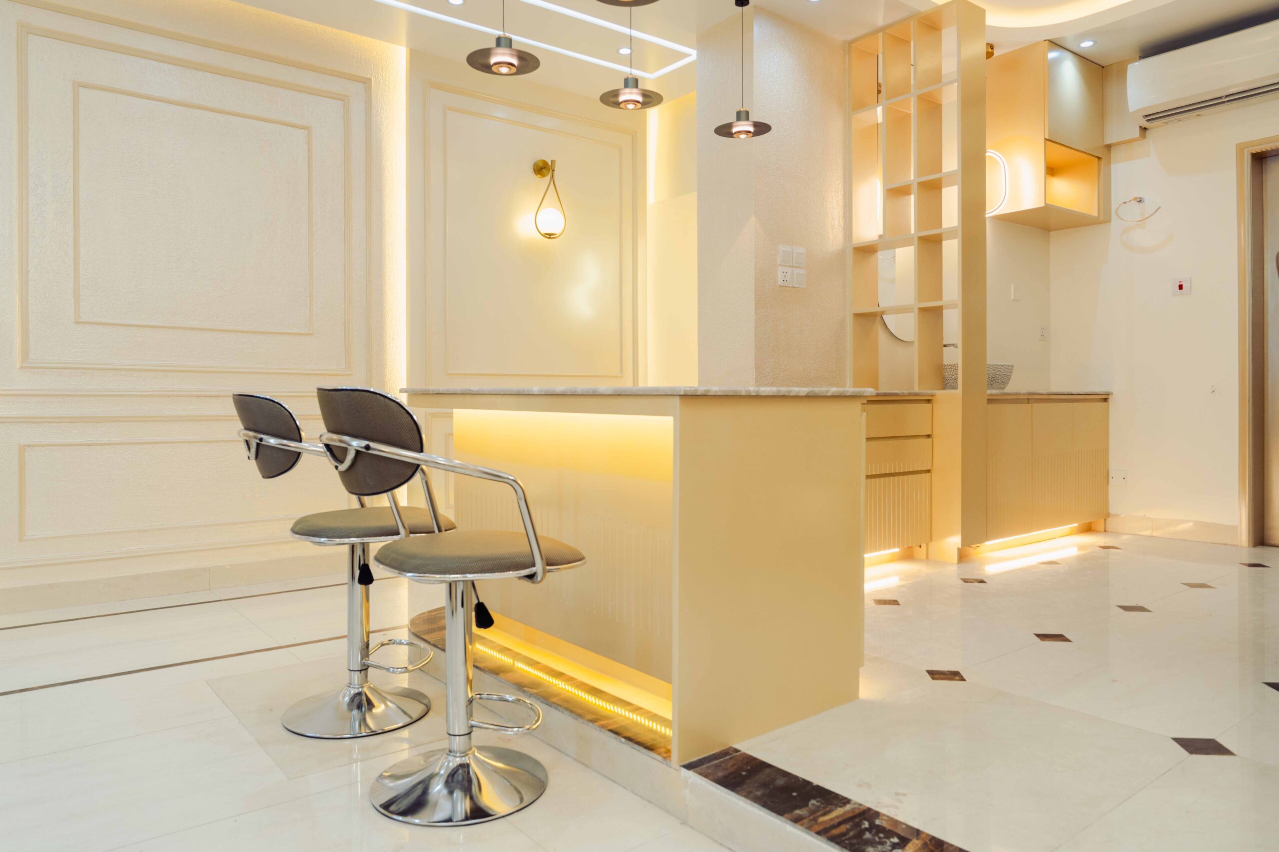 Foyer: The foyer serves as an elegant entryway that establishes the apartment’s sophisticated character, utilizing premium materials and a refined composition to make a lasting impression while providing a practical space for visitor reception and transition management.