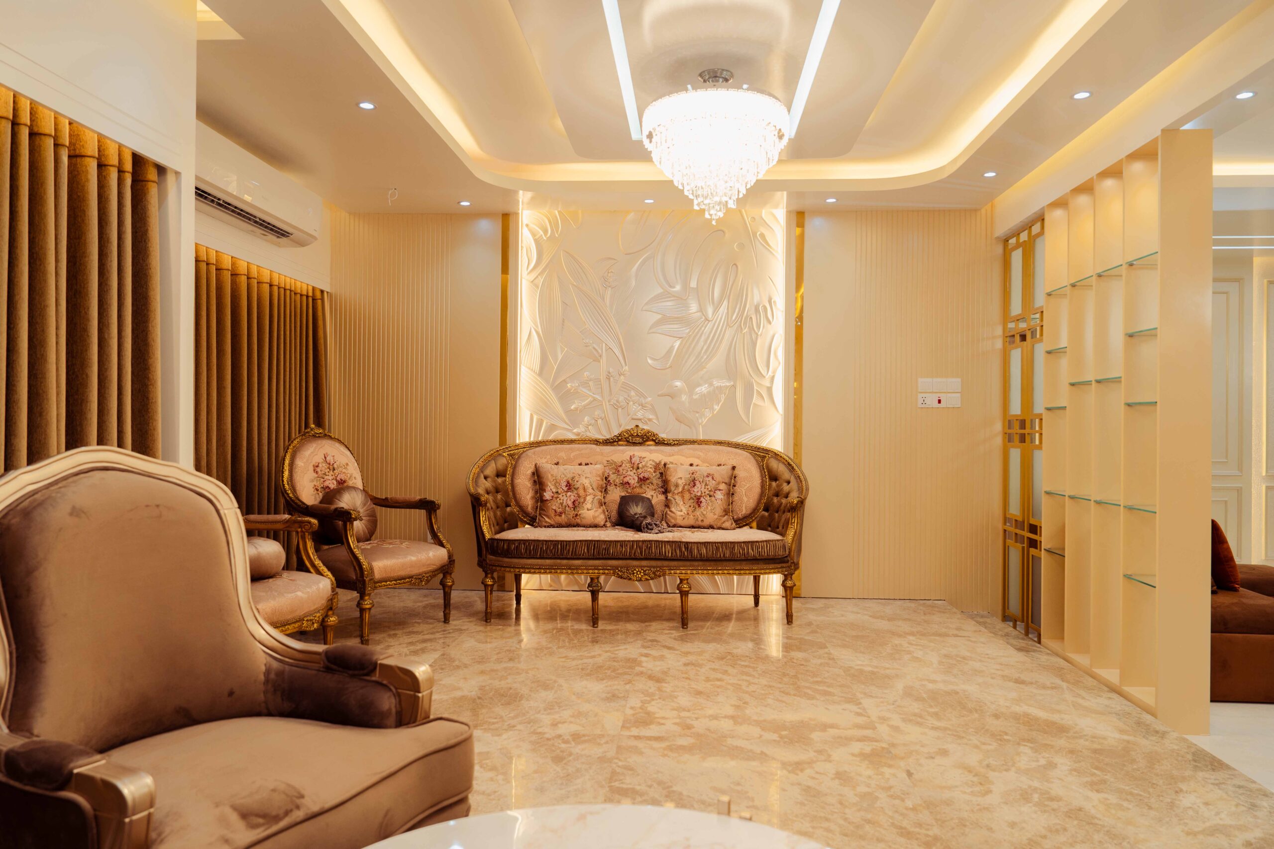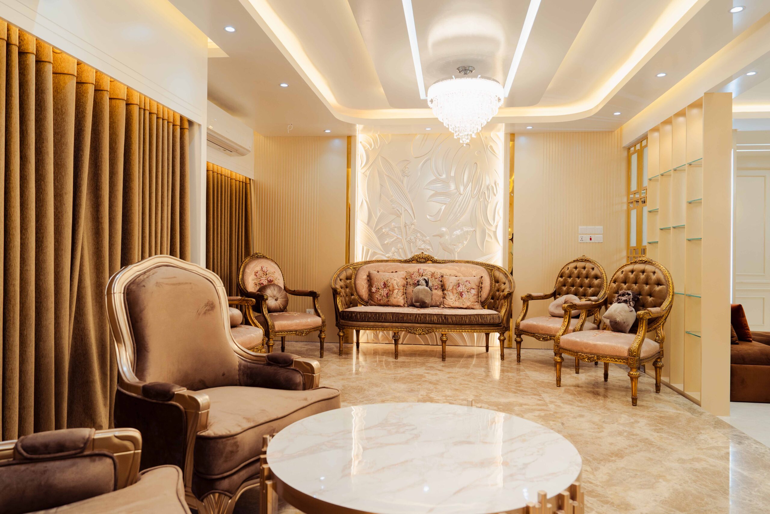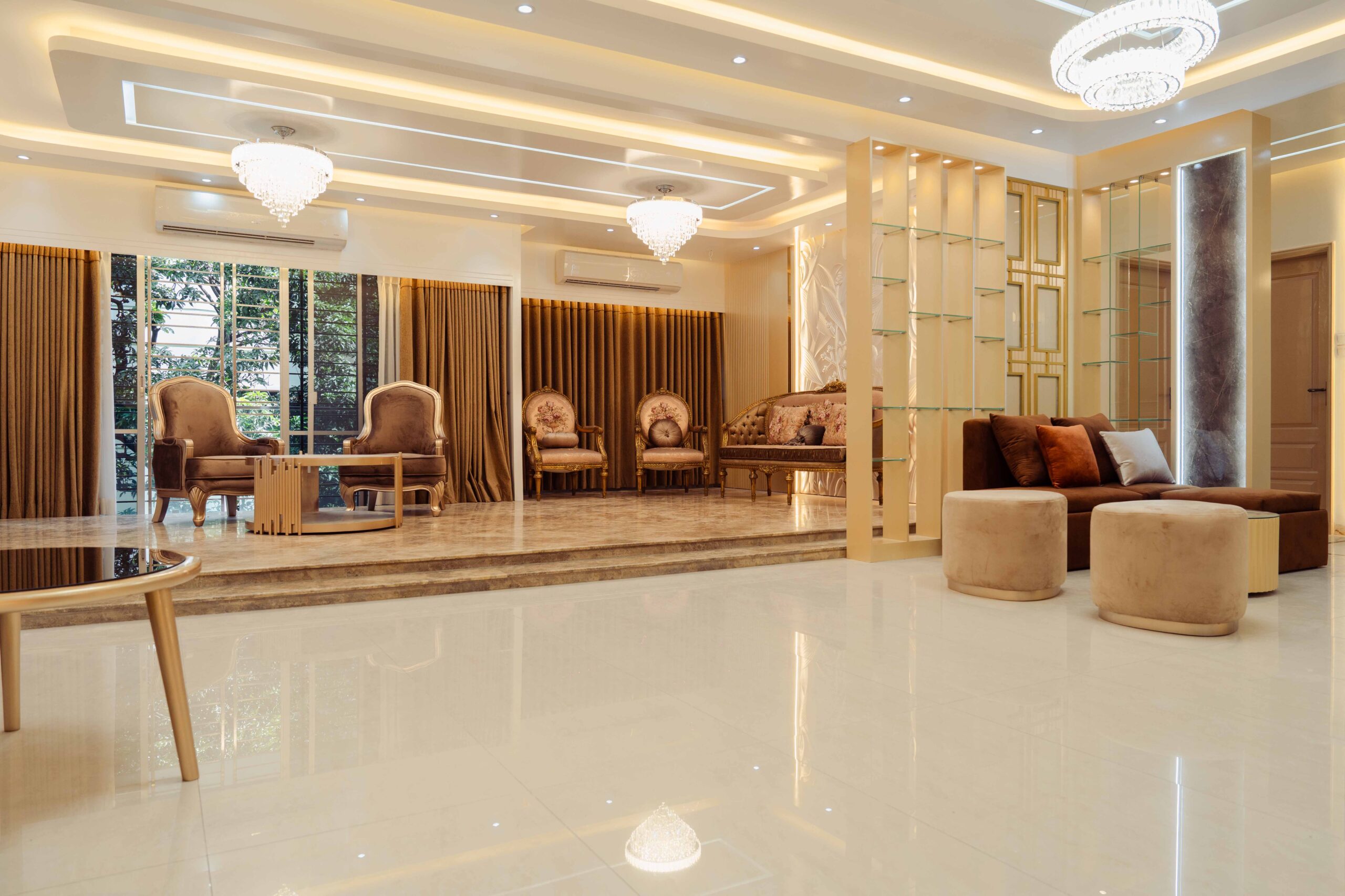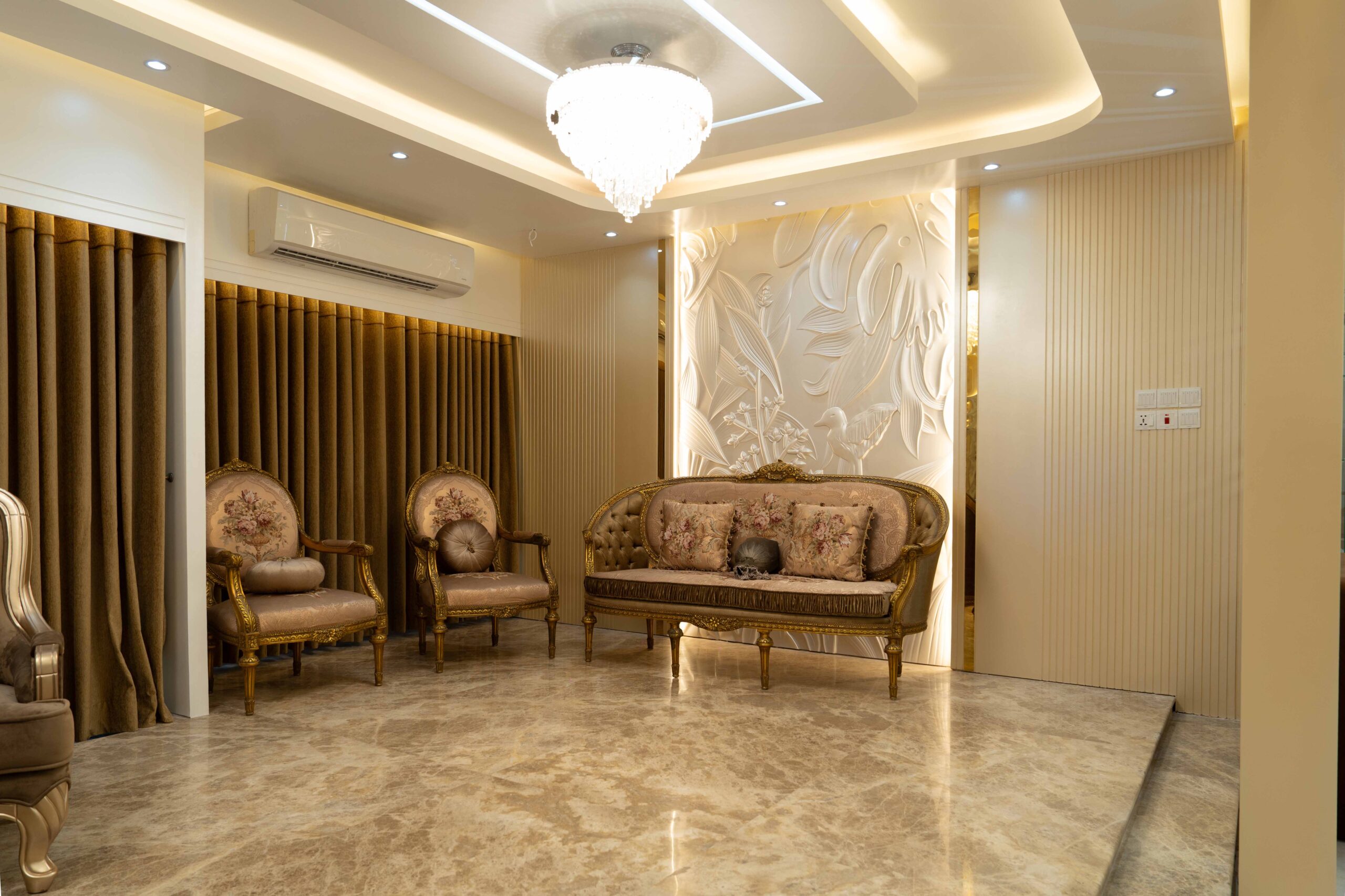 Formal Living: The formal living room is Ms. Anika’s premier guest reception space, featuring sophisticated furniture and aesthetics that prioritize impressive presentation and gracious conversation for important visitors.