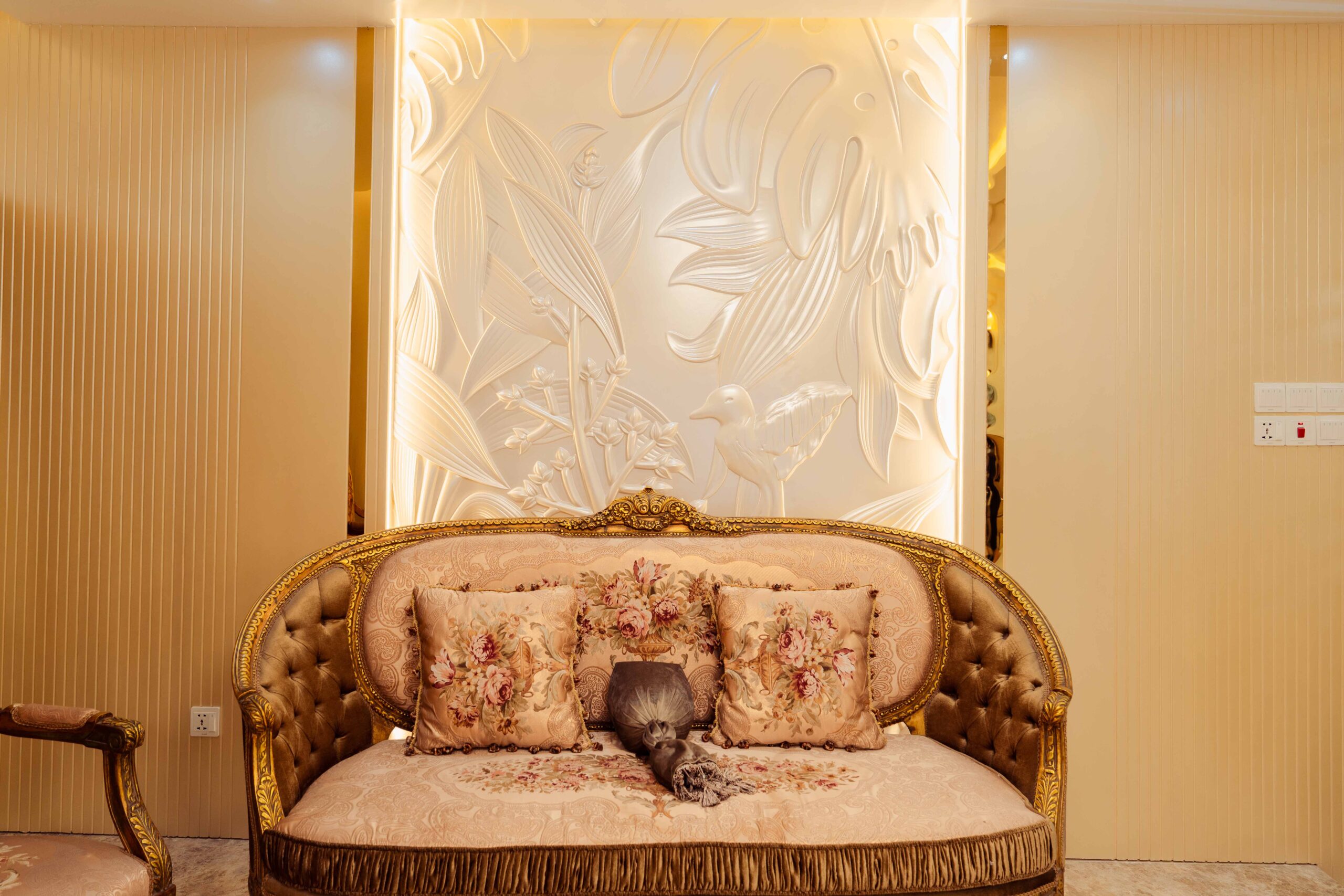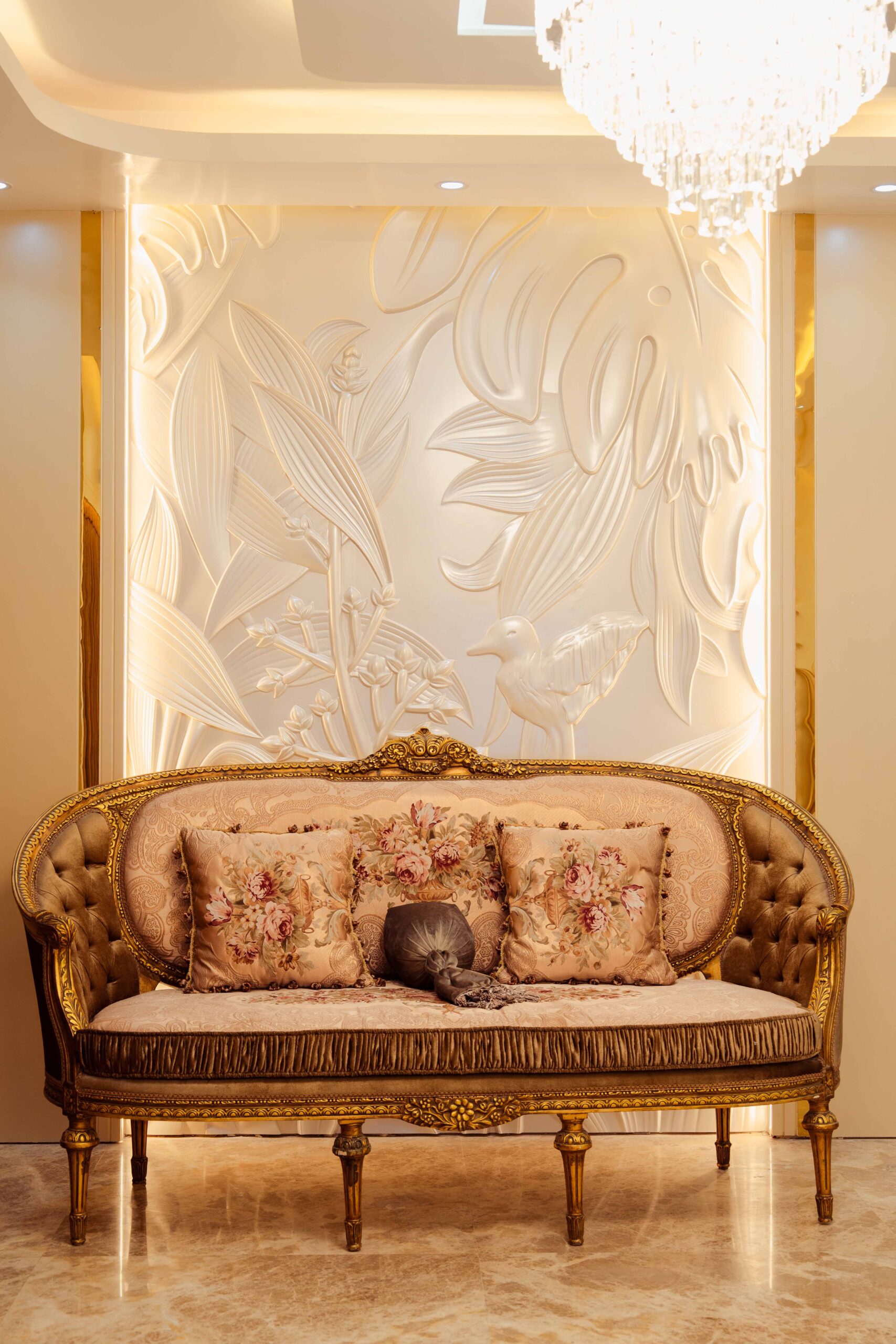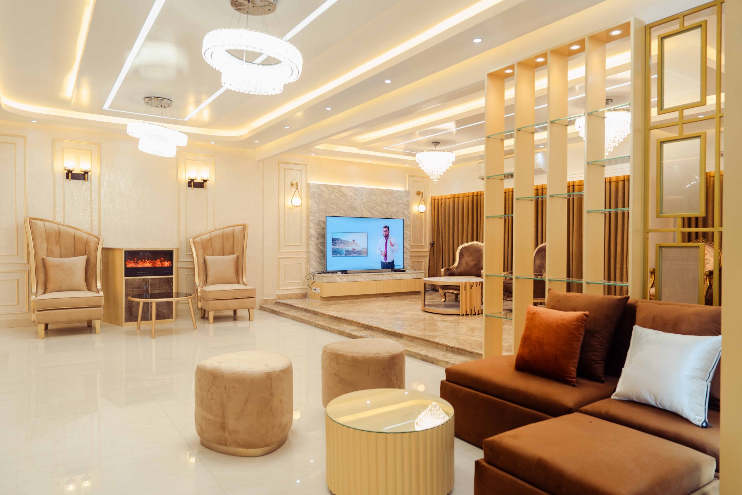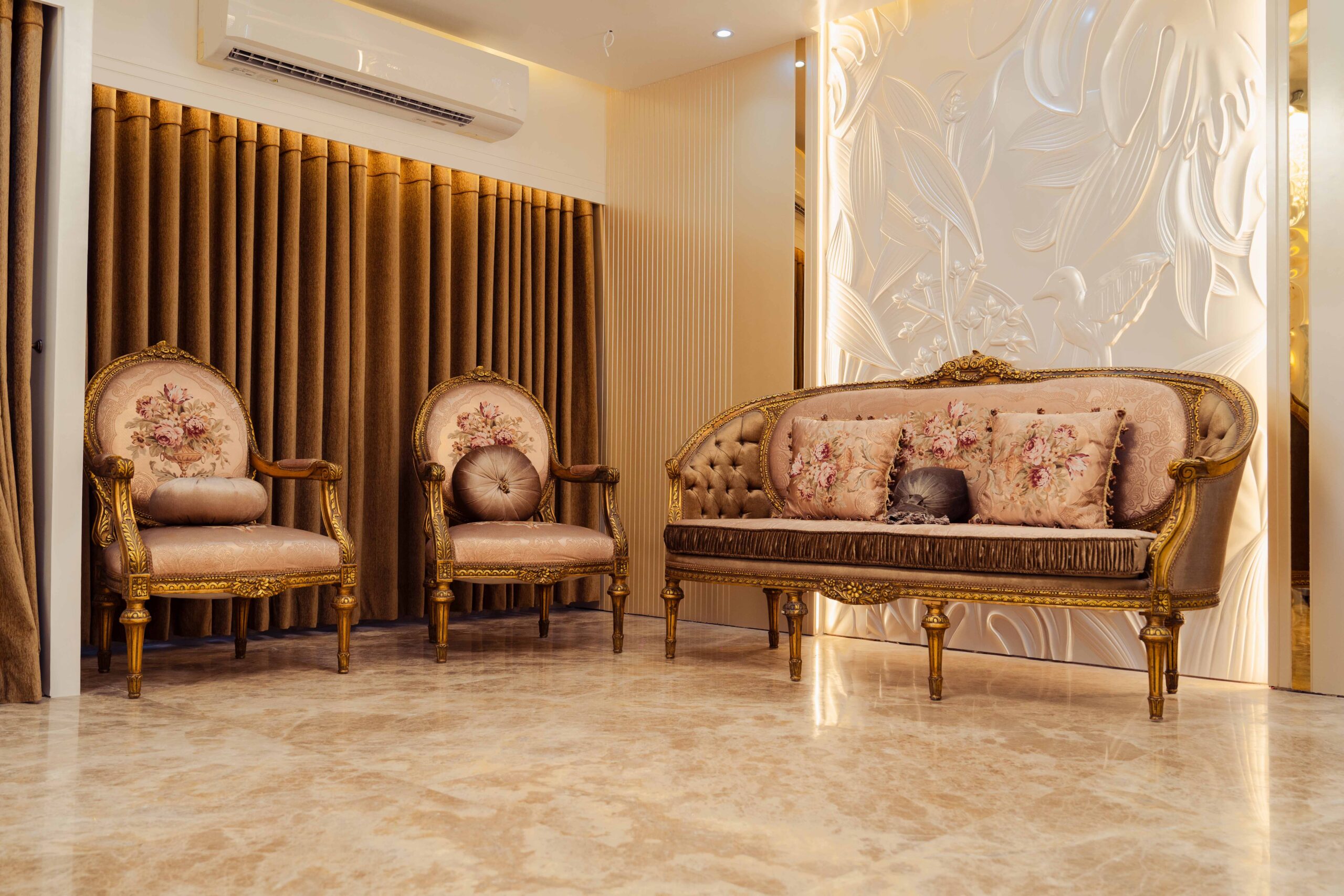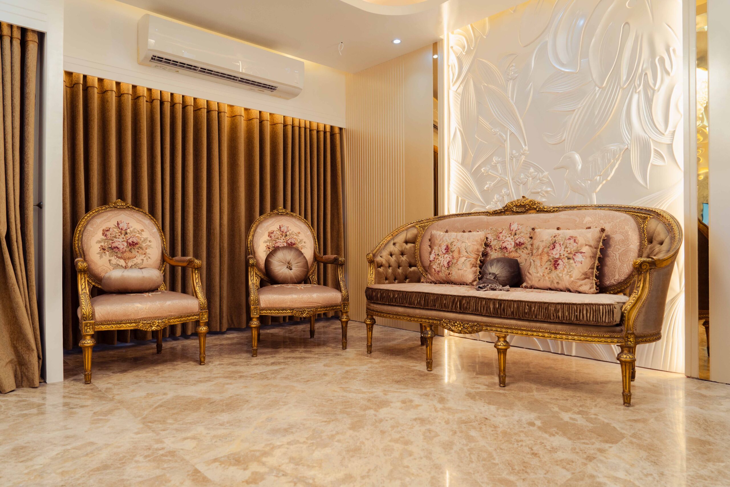 Formal Living: The formal living room is Ms. Anika’s premier guest reception space, featuring sophisticated furniture and aesthetics that prioritize impressive presentation and gracious conversation for important visitors.