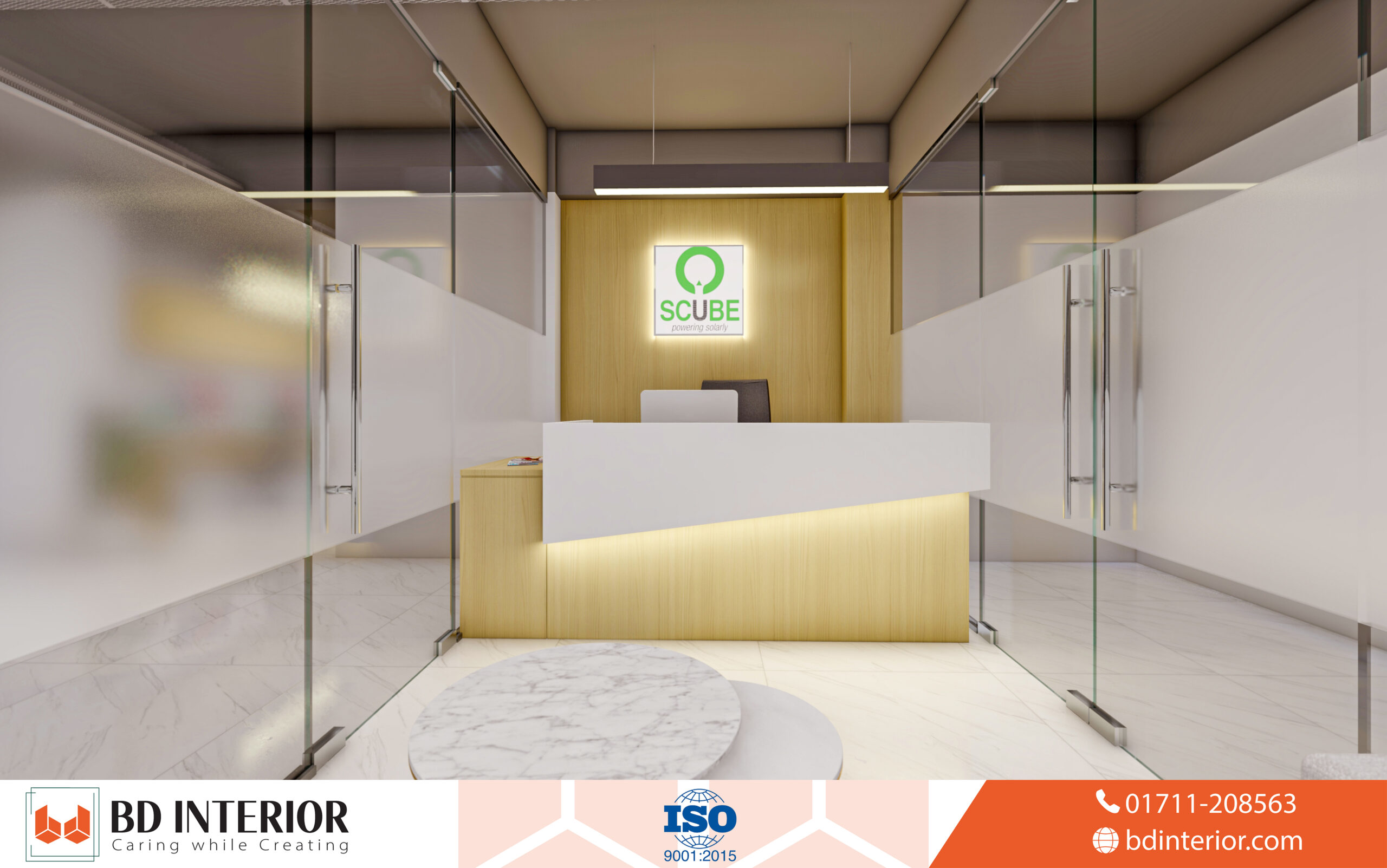 The waiting area introduces Scube Technology’s culture, welcoming clients and visitors while reflecting expertise and professionalism. The arrangement prioritizes comfort through strategic seating, maintaining reception visibility, and offering privacy for confidential conversations.