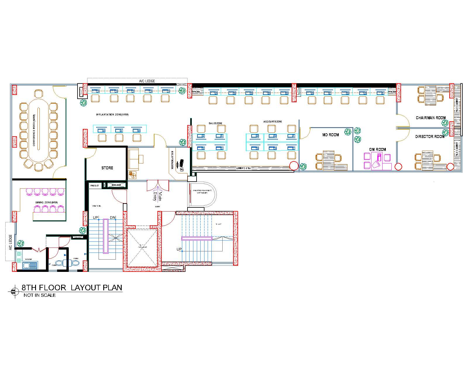 CONFERENCE ROOM: We conceived the conference room as Scube Technology’s primary client presentation and strategic planning center. The design incorporates advanced presentation technology and acoustic treatment necessary for software demonstrations and technical discussions. The layout facilitates both formal client meetings and internal sprint planning sessions, with careful attention to sight lines and technology integration that supports modern software development methodologies.